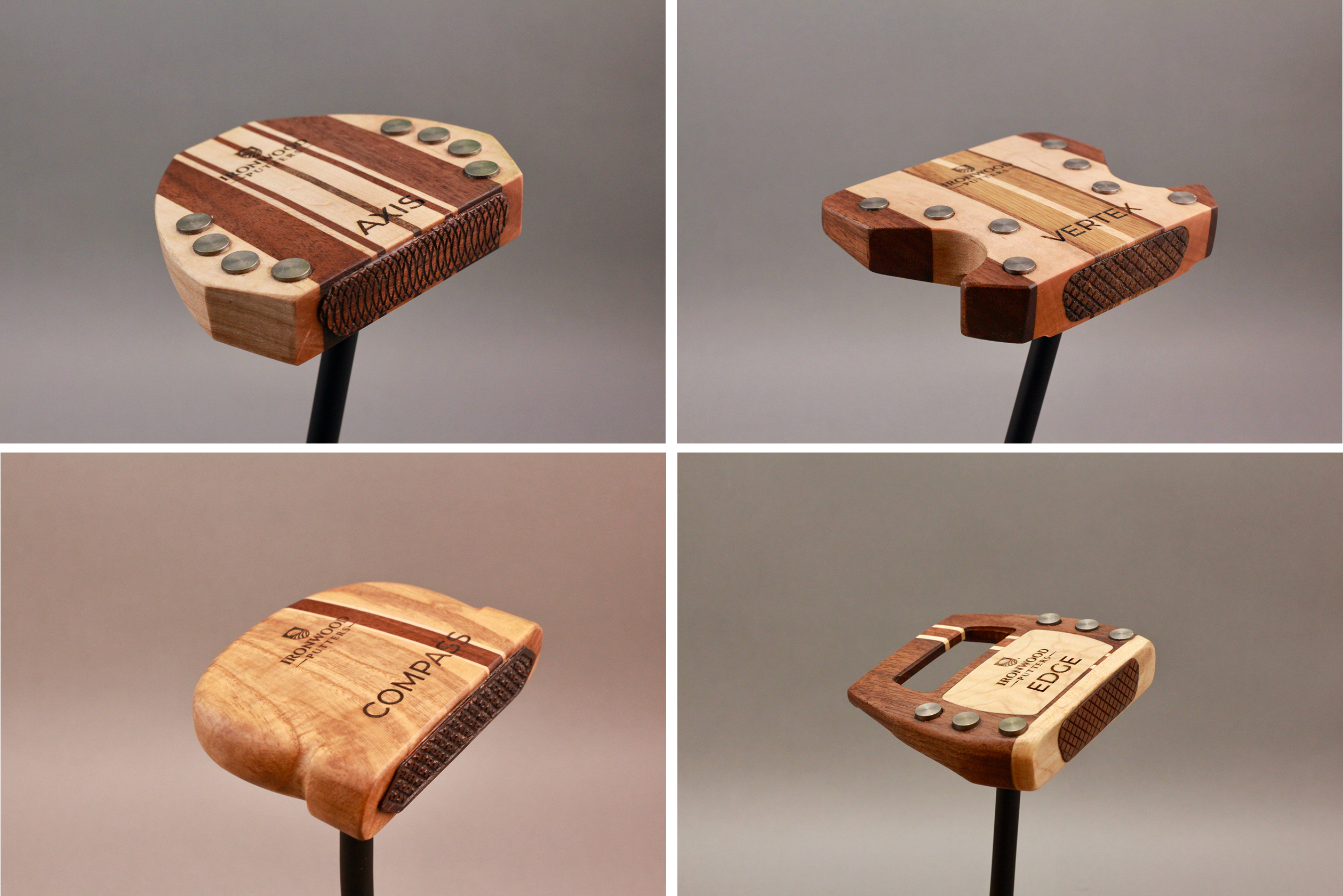 Handcrafted wooden putters engineered for balance and feel.